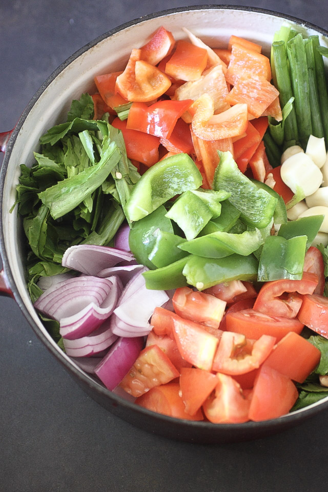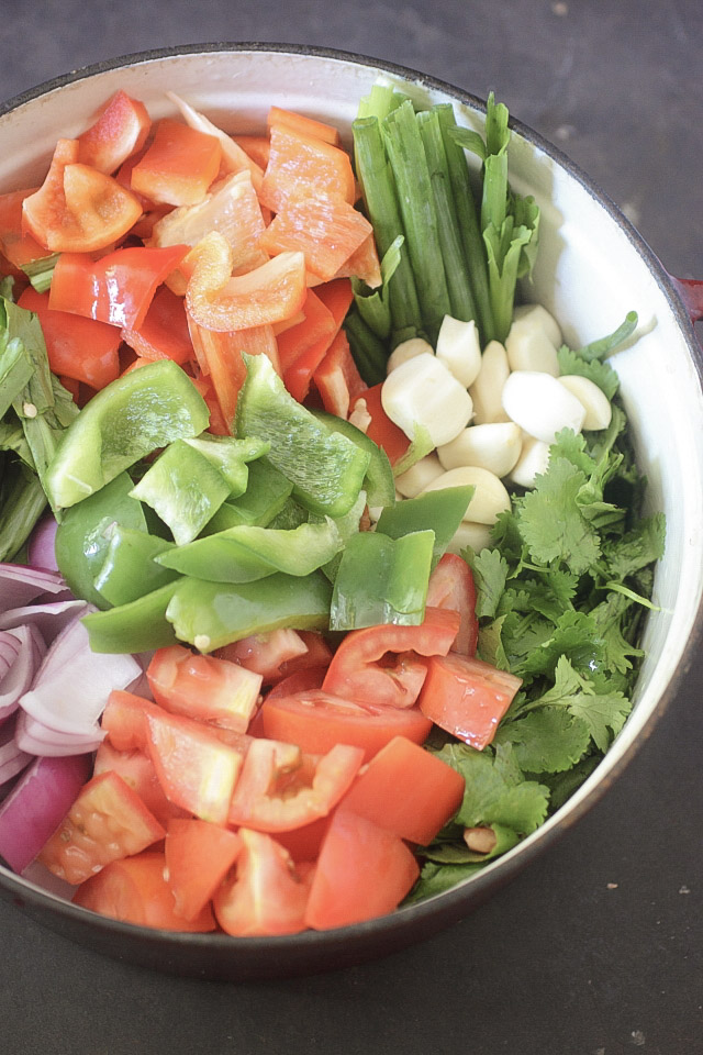 Roll like a Latina! Dominican Sofrito is a savory sauce used in Latino cooking made with aromatics, peppers, and herbs. Add it to everything!